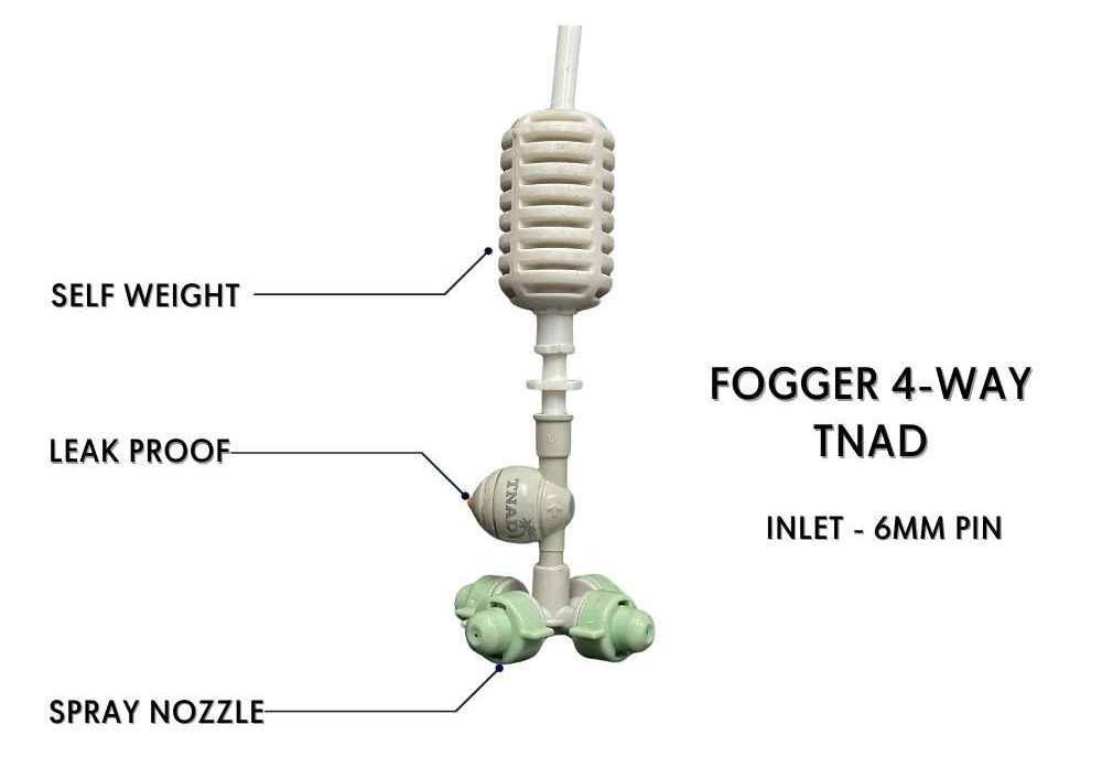 TNAD 4-Way Fogger, designed to meet the high standards of poultry farms, dairy farms, and mushroom farms. With its superior spray quality, enhanced performance, and best-in-class durability, this fogger is set to redefine efficiency in humidification and cooling applications.